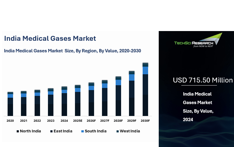 The region's strategic location with better logistics and distribution networks allows for more efficient transportation and supply of gases across hospitals and remote healthcare centers. These combined factors make Northern India the dominant contributor to the medical gases market in the country.